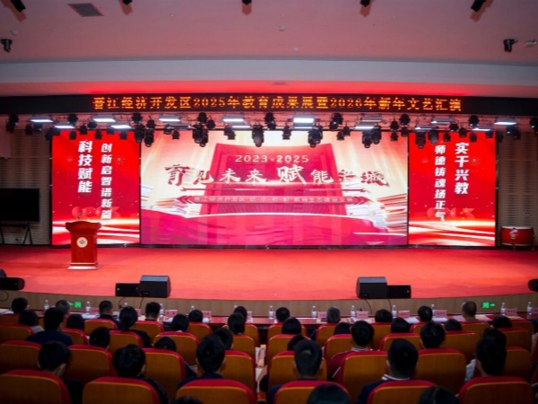 2025年12月31日,辞旧迎新之际,晋江经济开发区科技产业教育成果展暨2026新年文艺汇演隆重举行。晋江安海职业中专学校经济开发区校区以专业担当惊艳亮相,不仅独立完成开场暖场视频《育见未来 赋能产城——晋江经济开发区“幼-小-初-职”教育生态建设全景》的拍摄制作,更携优质教育成果与特色文艺节目精彩呈现,以镜头叙事开篇、以成果聚力、以艺术传情,在岁末迎新的温馨氛围中,深度彰显“红擎赋能·铸魂育人”办学底色与专业育人高度,赢得现场嘉宾与观众的高度赞誉。