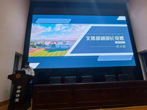 竞选环节作为大会核心,气氛热烈而有序。近四十位候选人依次登台竞选,以自信昂扬的姿态展开角逐。他们结合自身特长、过往工作经历及对竞选岗位的认知,用真挚的语言阐述服务理念,用清晰的思路勾勒工作蓝图——从优化校园活动形式、提升服务效率,到加强部门协作、关注同学需求,每一份规划都饱含着为校园奉献的赤诚之心。部分候选人还通过PPT展现了多元的能力与鲜明的个性,精彩的表现赢得台下师生阵阵掌声 。