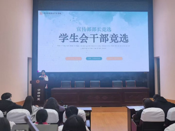评委团秉持“公平、公正、公开”的原则,从语言表达、岗位认知、工作规划、综合素养等多维度对候选人进行全面考评,现场打分并记录。竞选间隙,团委书记许小茴对候选人们的勇敢担当与精彩表现给予高度肯定,同时寄语全体参选同学:学生会干部的身份不仅是荣誉,更是一份沉甸甸的责任,希望大家始终以“服务同学、奉献校园”为初心,在实干中锤炼本领,在奉献中实现成长。经过激烈角逐与严谨评审,新一届学生会部长及各部门干部名单产生。