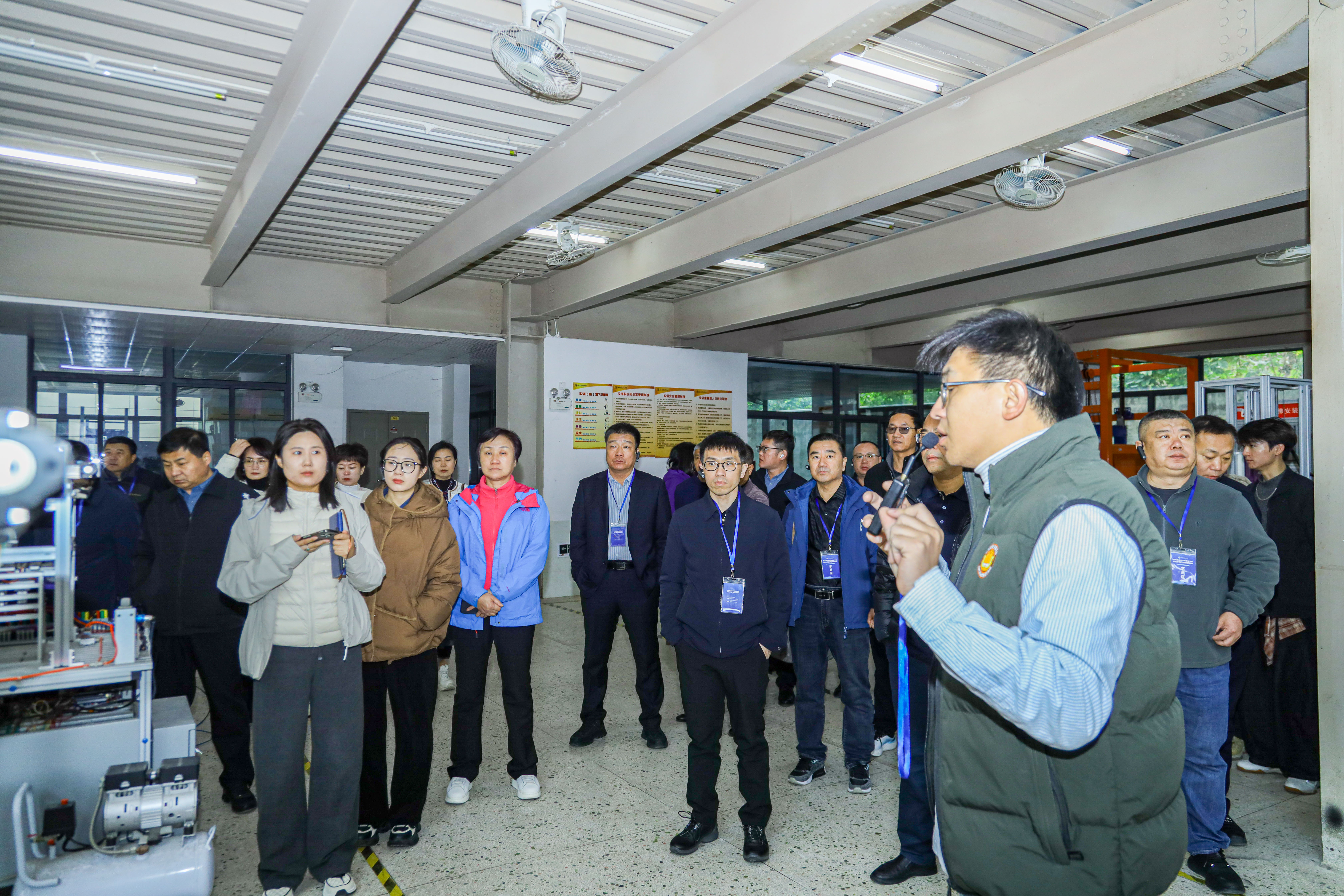 是日上午,研修班成员对学校整体环境与办学基础设施进行实地观摩。刚刚举办过建校三十周年系列活动的校园气象一新,文化走廊、同心广场、荣誉墙与现代化的实训场馆和谐相融,既蕴含文化育人理念,又彰显职业教育特色。杨硕南校长简要回顾了学校三十年来扎根区域经济、服务社会发展的办学历程。考察团成员对学校的办学成果,特别是职教高考和技能竞赛等方面的人才培养成效表示赞赏,认为相关经验值得借鉴推广,为同类院校提供了有益参考。