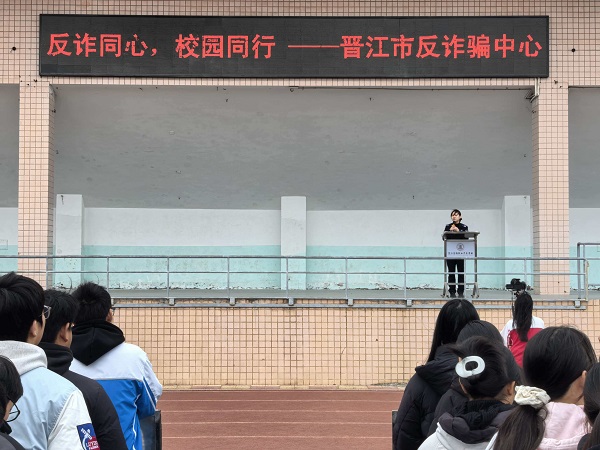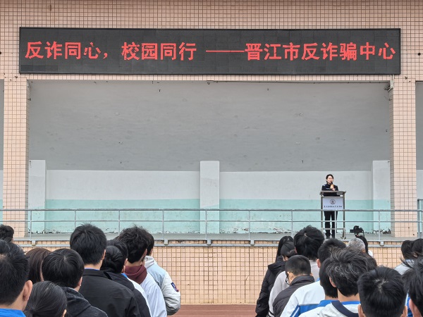 为深入贯彻落实国家关于打击治理电信网络诈骗犯罪的工作部署,切实提升师生识骗、防骗、拒骗能力,筑牢校园安全“防火墙”,2026年1月20日,晋江安海职业中专学校组织开展以“反诈同心,校园同行”为主题的反诈骗安全教育专题活动。本次活动特邀晋江市公安局刑侦大队反诈骗中心讲师蔡均君担任主讲,安平派出所吴春煌警官作总结讲话,保卫处主任刘汪洋主持活动。