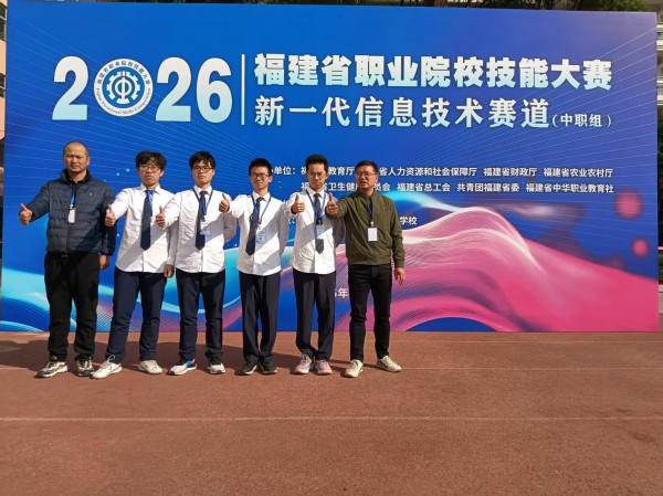 2026年1月,两项赛事接连开展。17日至18日,泉州华侨职校承办“新一代信息技术”赛道,全省55支队伍同台竞技。我校23网络2班曾思铭、杨昱、许晋亨、曾英权四位选手,在班主任洪天配及指导老师廖甫明、方剑清、黄晓雄的指导下,完成信息技术实操考核,最终获铜奖。