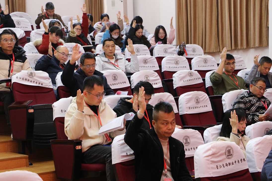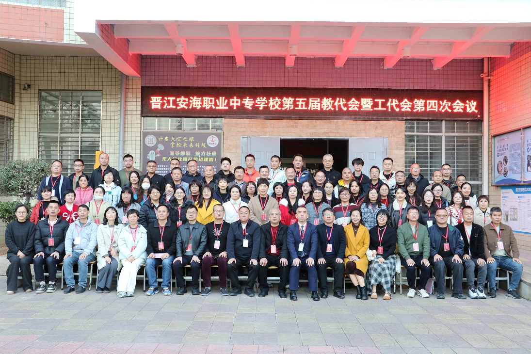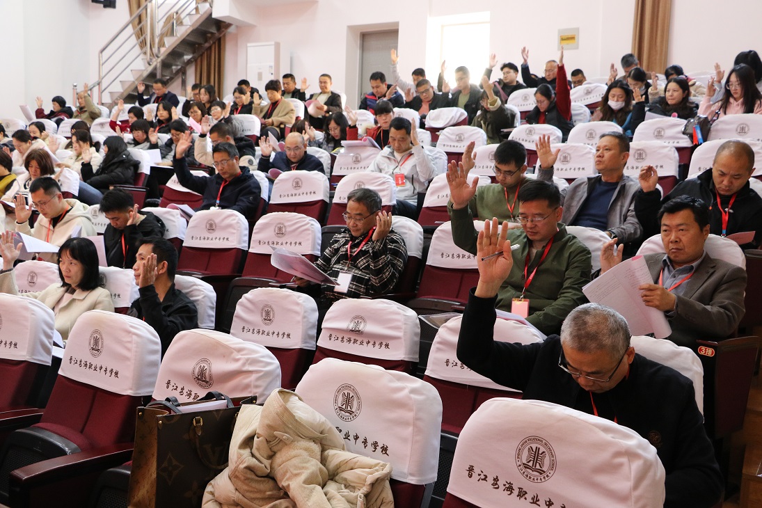 2026年2月2日下午,晋江安海职业中专学校第五届教代会暨工代会第四次会议在学术报告厅顺利召开。校领导黄源华、杨硕南、桂伟伦、柯明春、翁天妙、刘庆建、林振盛,正式代表、列席代表共106名参加大会。
