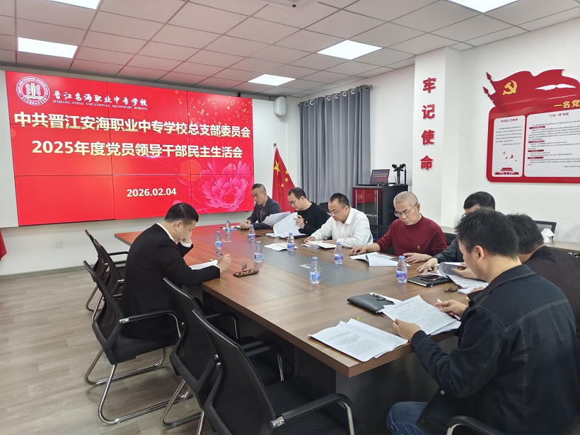 2月4日下午,根据有关工作安排,晋江安海职业中专学校召开2025年度党员领导干部民主生活会。教育系统党委书记卓鸿源到会指导,党总支书记黄源华主持民主生活会,学校领导班子参加会议。