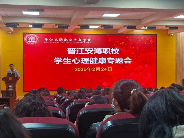2026年2月24日下午,晋江安海职业中专学校组织召开了学生心理健康专题会议。会议由学校政教处副主任张金斗主持,学校党总支书记黄源华、党总支委员林振盛、全体德育团队以及入职未满三年的新教师共同参加了此次会议。