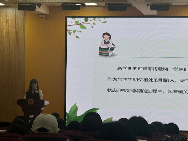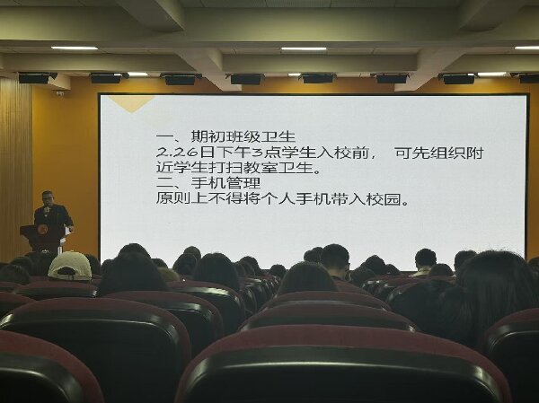 会上,首先由团委书记许小茴就新学期团委重点工作进行了布置,明确了学生活动、组织建设等方面的具体安排;接着保卫处副主任杨天真针对学生开学入校的各项安全工作进行布置和强调,要求全体班主任严格落实安全责任,针对交通安全、反诈骗要重点关注,筑牢校园安全防线;随后生管组负责人王文炎老师就宿舍管理工作提出具体要求,重点围绕“7S”管理标准的落实、宿舍设施维修维护等问题进行说明,希望班主任密切配合,共同营造整洁、有序、文明的住宿环境;心理健康教辅中心黄艳芳老师结合春季开学特点以“春季期初学生心理健康关注指南”进行分析和提供解决方案,提醒班主任密切关注学生心理动态,及时洞察学生开学焦虑情绪,并分享了系列科学有效的心理疏导策略;再由政教处副主任郑宜带就学校纪律管理工作进行说明,强调要以规范促养成,以纪律保秩序;随后政教处副主任张金斗对期初德育相关工作进行周密部署,明确了近期工作要点,特别强调要高度重视学生生理与心理健康、校园欺凌和手机管理;最后由政教处主任颜宏侠作补充说明,传达了总务处关于爱护公物、食品健康及校园安全的有关工作要求,进一步强化了后勤育人的协同意识。