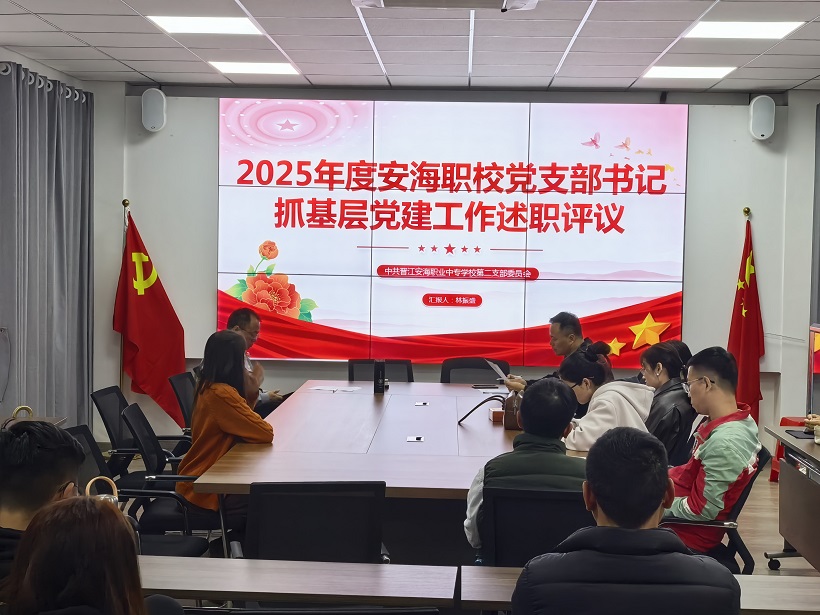 为深入贯彻落实上级党组织关于加强基层党建工作的部署要求,全面检验各党支部书记履行基层党建“第一责任人职责”情况,2026年3月6日下午,晋江安海职业中专学校四个党支部召开了2025年度党支部书记抓基层党建工作述职评议会,全体党员参加会议。