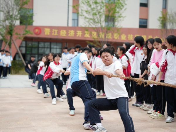 为深入贯彻“健康第一”的教育理念,落实立德树人根本任务,丰富校园文化生活,增强班级凝聚力与团队协作精神,近日,晋江安海职业中专学校经济开发区校区拔河比赛在B栋广场正式拉开帷幕。本次赛事24级、25级共20支班级队伍踊跃参赛,班主任全程带队参赛、并肩作战,在力量与协作的碰撞中,为青年学子上了一堂生动的思政实践课。