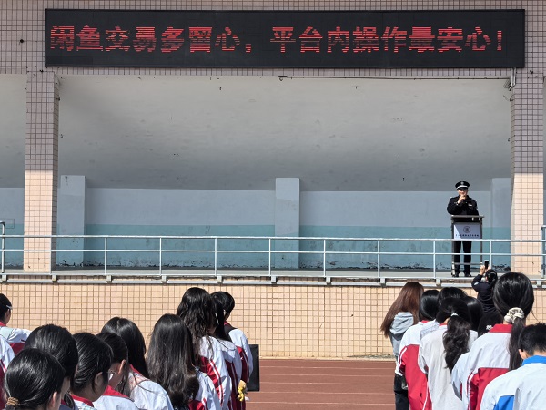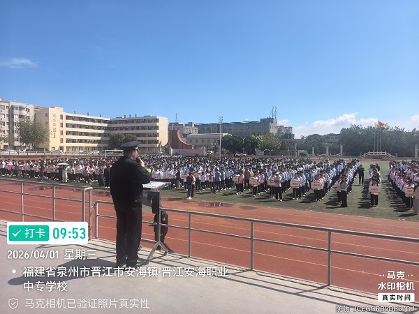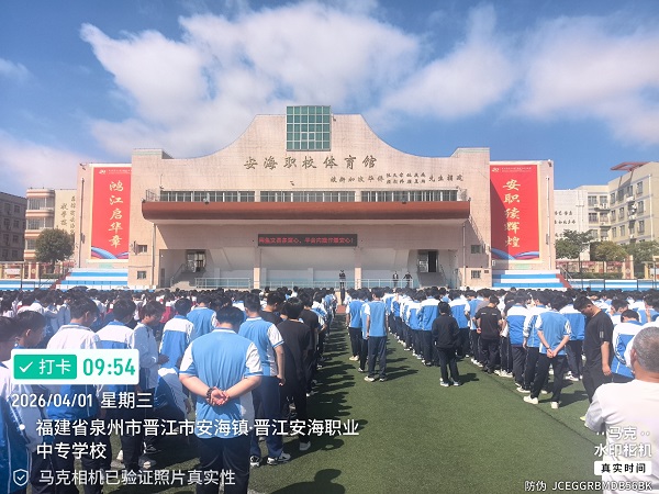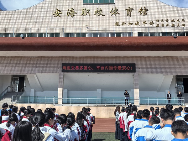 为进一步筑牢校园安全防线,切实提升全体师生防范电信网络诈骗的意识与能力,晋江安海职业中专学校于2026年4月1日在学校操场隆重举行了一场主题鲜明的防诈骗安全教育活动。本次活动聚焦“闲鱼交易多留心,平台内操作最安心”,旨在通过精准宣传,为师生财产安全保驾护航。学校全体师生共同参与了此次活动。