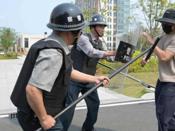 接到报警后,学校应急防暴小组迅速响应,按照演练方案快速集结,携带防暴盾牌、钢叉、约束带等器械,以最快的速度赶到校门口,与门卫值班人员协同配合,形成合围之势。面对“不法分子”的疯狂冲撞,安保人员沉着冷静、分工明确,有的手持盾牌进行防护,有的手持钢叉进行阻拦,有的伺机寻找突破口,规范运用战术技巧,一步步缩小包围圈,始终保持高度警惕,避免“不法分子”闯入校园伤害师生。同时,任课教师迅速组织学生隐蔽避险,安抚学生情绪,整个演练过程紧张有序、环环相扣,从“不法分子”闯入、门卫报警,到应急防暴小组集结处置、教师组织学生避险,每一个环节都衔接顺畅、处置规范。安保人员反应迅速、操作熟练,充分展现了良好的应急处置能力和责任担当;全体师生听从指挥、配合默契,严格按照演练要求开展避险和处置工作,展现了过硬的应急素养和协同作战能力。经过几分钟的紧张处置,应急防暴小组成功将“不法分子”控制,并移交相关部门处理,演练取得了圆满成功。