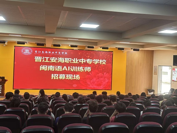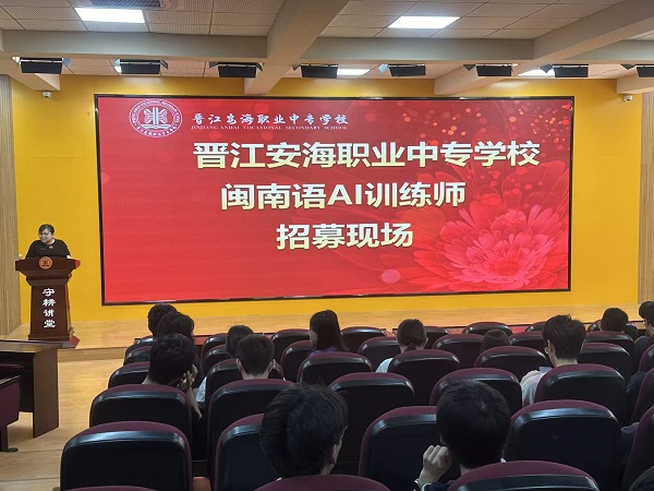 近日,晋江安海职业中专学校举行闽南语AI训练师面试,来自各专业的学生应聘者齐聚一堂,同台竞技,争夺加入闽南语AI训练团队的资格。